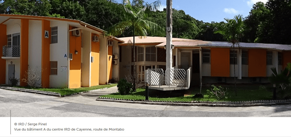 La représentation de l’IRD en Guyane, 3200 m² de laboratoires et de bureaux dédiés à la recherche et aux collaborations scientifiques situés en contrebas de la colline Montabo.